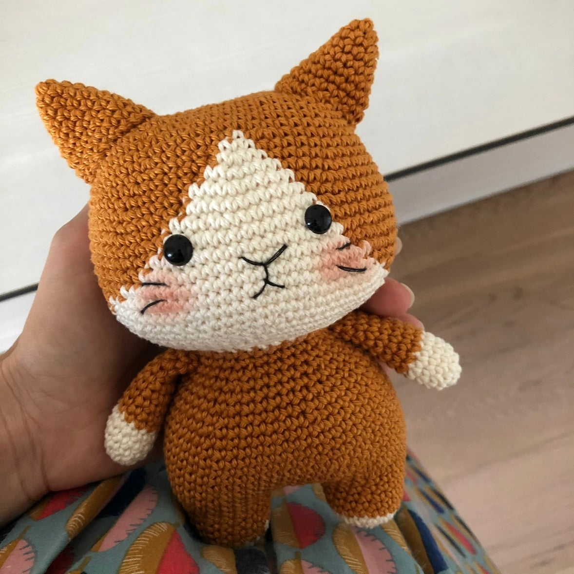 Dolce gatto amigurumi realizzato in cotone organico e imbottitura anallergica.